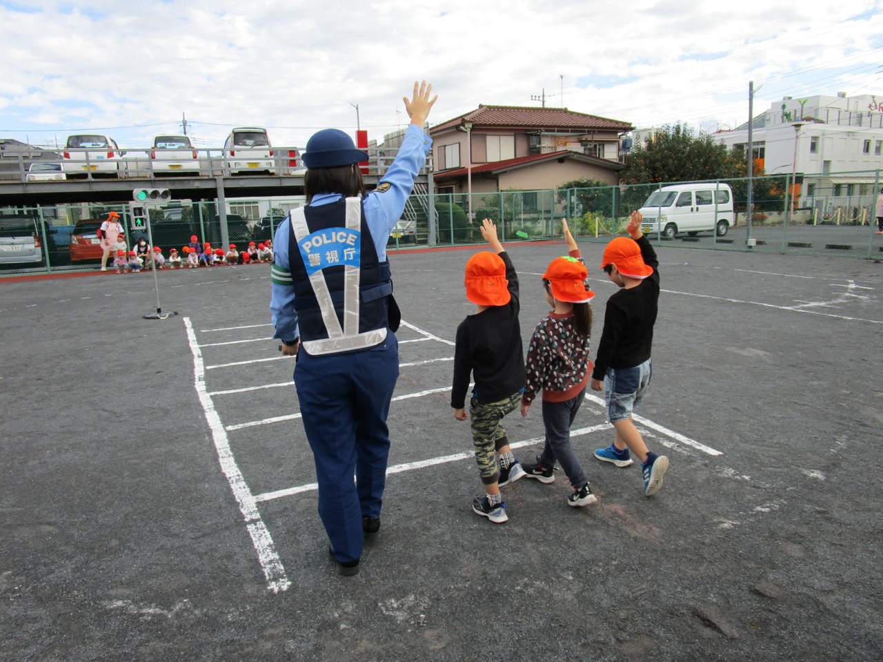 本日、福生警察署より警察官の方3名が来園され、交通安全集会を行いました。