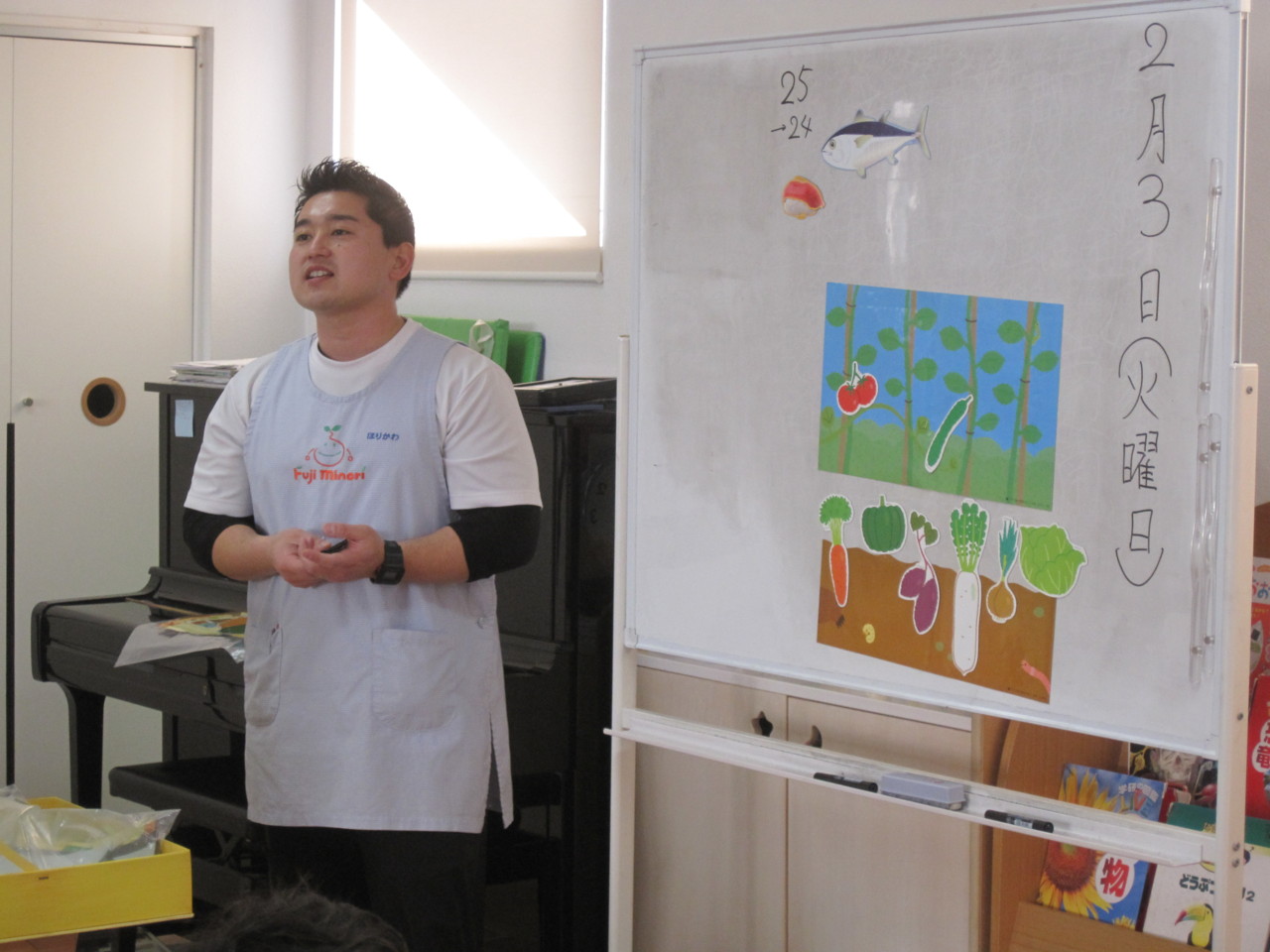 はじめに、職員から野菜の育ち方についてのお話があり、