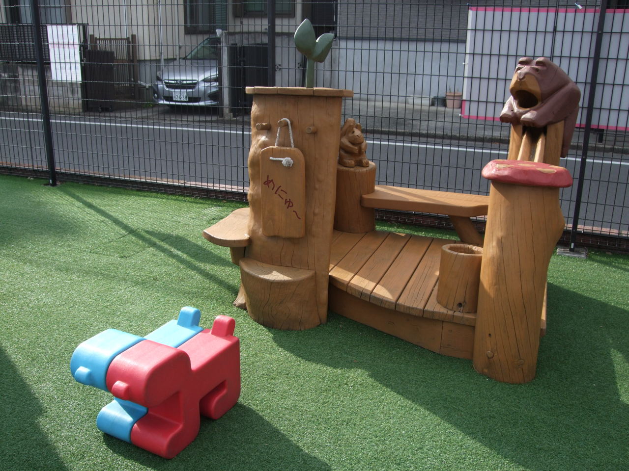 第三園庭で遊んでいる木の遊具をきれいにしました。